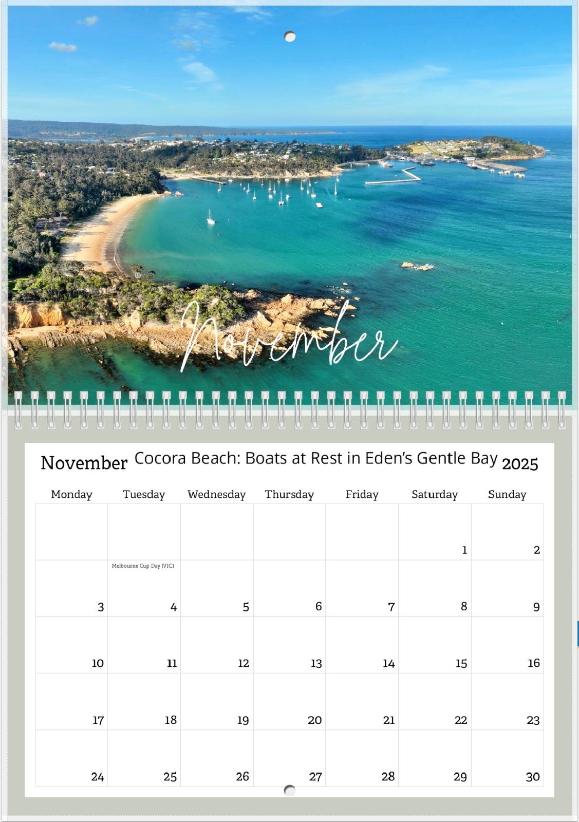 A peaceful scene from Cocora Beach, looking out over the bay where boats are gently anchored. The beach stretches endlessly toward the horizon, while the soft blue waters invite you to relax and explore. This image captures the calm and serene beauty of Eden’s coastline as the warmth of summer begins to emerge.