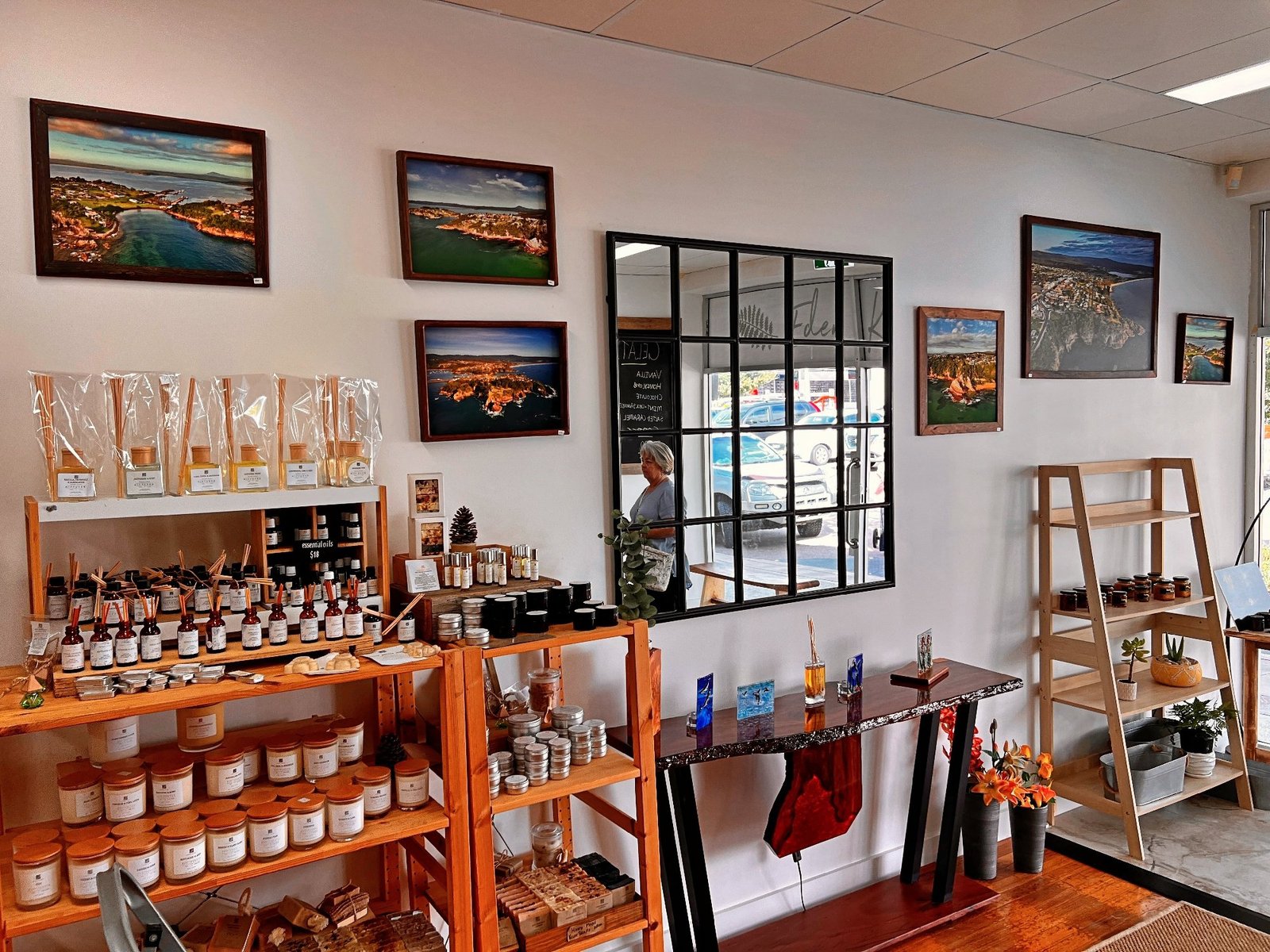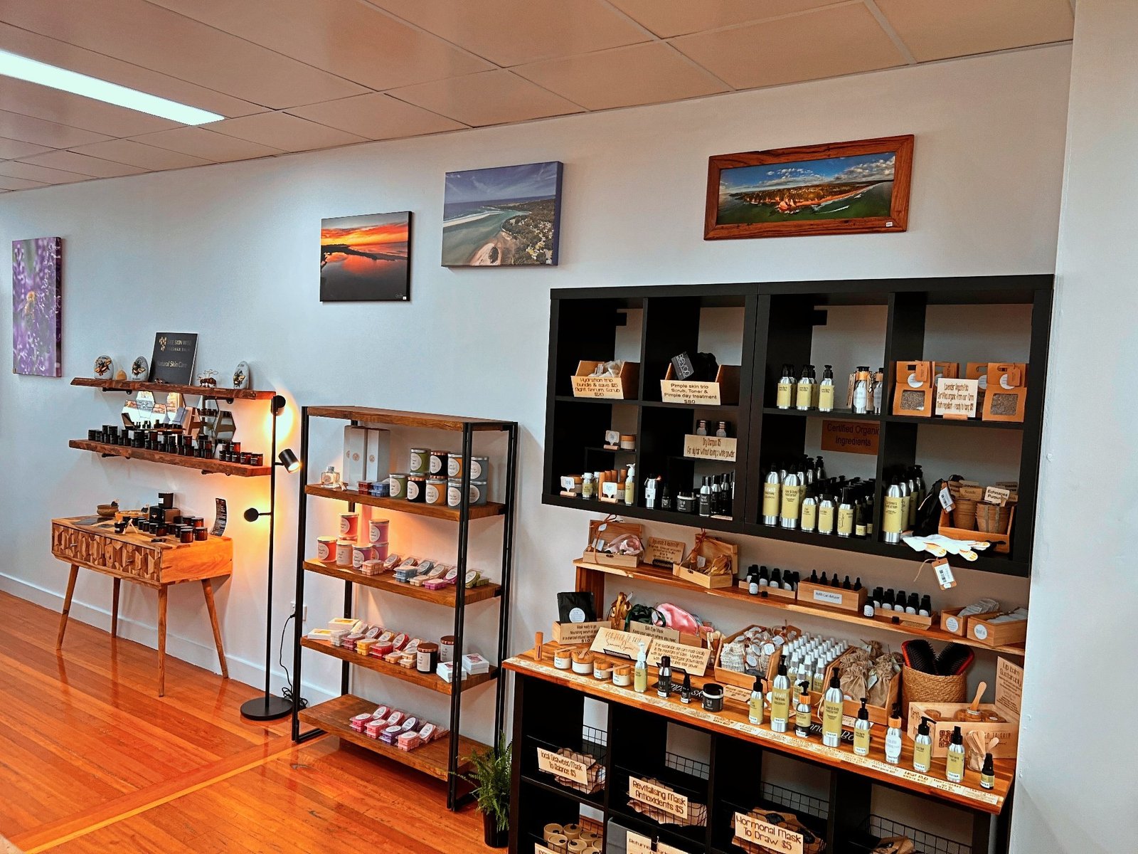 There’s everything from handmade candles and nourishing skincare to essential oils and vibrant artwork. I spotted framed photographs of Eden’s coastline—gentle reminders of the wild beauty that surrounds us. One display, in particular, caught my eye: playful, botanical face masks and “hormonal mask” skincare—clever, honest, and refreshing. Gift sets were nestled nearby, perfect for birthdays, thank-yous, or just-because moments.